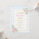 Fancy Elegant Roses Blueberry Birthday Invitation. Pink roses, green leaves, and blueberry on blue stripes, gold customisable text (gold is not real gold but colour). Fancy, feminine, and ornate, yet elegant, with slightly Victorian look and feel. Pink, light blue, deep purple, green.