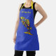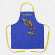 This kitchen apron is a deep blue with tiny white flecks and a fancy fish with scales in bright multiple colours of yellow, orange, green, blue and red. Customise your text with the template.