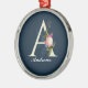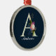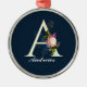Fancy Floral Monogram A Dark Blue Metal Ornament