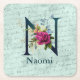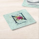 Fancy Floral Monogram Initial N Square Paper Coaster