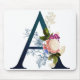Beautiful and fancy florals include gold leaves, purple rose and blue wildflowers embellishments on large letter / initial A.