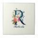 Beautiful and fancy florals include gold leaves, purple rose and blue wildflowers embellishments on large letter / initial R. Cream background. Personalise with name.