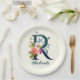 Fancy Floral Monogram Letter R Paper Plate