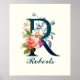 Beautiful and fancy florals include gold leaves, purple rose and blue wildflowers embellishments on large letter / initial R. Cream background. Personalize with name.