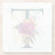 Fancy Floral Monogram Letter T Glass Coaster