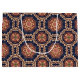Gift bag with a repeating pattern of decorative ornate elements in flower, star and sun shapes.