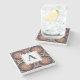 Fancy Flower and Star Shapes Pattern Monogram Stone Coaster