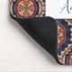 Mouse pad with a repeating pattern of decorative ornate elements in flower, star and sun shapes.