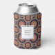 Can cooler with a repeating pattern of decorative ornate elements in flower, star and sun shapes.