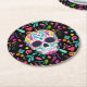 Fancy Flowered Sugar Skull Round Paper Coaster