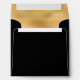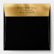 Elegant all-purpose envelope done in black, with graphics of a gold ornamental swirl, on the front and a solid gold back flap. Inside the envelope there is graphics of a solid gold lining. Personalise the return address to suit your needs. Great for special occasion invites, thank you cards and announcements.