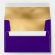 Elegant all-purpose envelope done in deep purple, with graphics of a gold ornamental swirl, on the front and a solid gold back flap. Inside the envelope there is graphics of a solid gold lining. Personalise the return address to suit your needs. Great for special occasion invites, thank you cards and announcements.