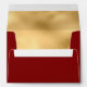 Elegant all-purpose envelope done in rich red, with graphics of a gold ornamental swirl, on the front and a solid gold back flap. Inside the envelope there is graphics of a solid gold lining. Personalise the return address to suit your needs. Great for special occasion invites, thank you cards and announcements.