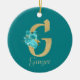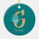 Fancy Gold & Aqua Floral Letter G Ceramic Ornament