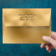 Elegant all-purpose occasion envelope done in gold graphics, with a semi transparent text area, on the front, decorated with a 3D looking gold floral piece. Inside the envelope there is graphics of a solid gold lining. Personalise the return address to suit your needs. Great for special occasion invites, thank you cards and announcements.
