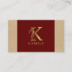 Fancy Gold Letter K Monogram On Red and Cardboard Business Card