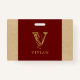 Fancy Gold Letter V Monogram On Red and Cardboard ID Badge