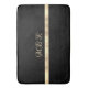Personalise with your monogram in fancy gold script and name on brushed gold stripe on black background.
