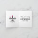 My drawing of an elegant Gothic candle holder in black and grey with bat wings, swirls, and hot pink drippy candles and pink jewels on a grungy grey background with hot pink swirls. Shown here on a wedding thank you card.