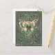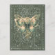 Postcard features beautiful AI generated digital art design of a Steampunk butterfly in greens on a vintage ornate vines background.