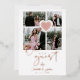 Fancy Lace Pink Heart 4 Multi Photos Collage Be our Guest Quote Wedding Metallic Foil Invitation Card with Envelope.
