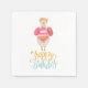 Whimsical watercolor illustration on these fun paper party napkins features an adorable llama with "Happy Birthday" text in fancy two-colour script font.
