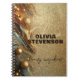 This customisable notebook combines opulence and sophistication. The front cover features a rich, gold glittery texture that sparkles with glamour. Intertwined with this glittery expanse is an elegant marble pattern, showcasing swirls of amber, white, and deep brown hues reminiscent of natural stone veining. Adding a whimsical touch, three-dimensional golden spheres embellish the marble section. The text on the notebook is fully customisable.