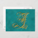Fancy royal elegant monogram letter J in golden yellow on a cloudy background (can be deleted) placed on a coloured background that can be changed too to any desired colour or deleted entirely and replaced with a personalised photograph. Every letter of the alphabet is available on postcards with matching postage stamps in my Gallery. In addition, greeting or note cards are available while on the stamp image of the monogrammed letter of your choice.