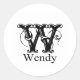 Fancy Monogram: Wendy Classic Round Sticker