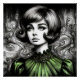 a stylised 1950s-inspired portrait of a young woman dressed in a puff-sleeved green dress