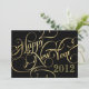 New Year's Eve Party Invitations -- Elegant and bold, but fun and festive in spirit -- Fancy gold script with bold trendy swirls on black background. This stylish and sophisticated design can be easily customised for formal dinner parties, cocktail party, or casual holiday open house celebrations. Just enter your information to create your own unique and trendy personalised invites for any special New Year event. Matching postage stamps, postcards, buttons, stickers and gifts available in gallery.