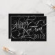 New Year's Eve Party Invitations -- Elegant and bold, but fun and festive in spirit -- Fancy silver script with bold trendy swirls on black background. This stylish and sophisticated design can be easily customised for formal dinner parties, cocktail party, or casual holiday open house celebrations. Just enter your information to create your own unique and trendy personalised invites for any special New Year event. Matching postage stamps, postcards, buttons, stickers and gifts available in gallery.