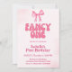 Fancy One Pink Bow Coquette Girl 1st Birthday Invitation
