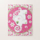 Pretty fancy hot pink and green floral east asian inspired elephant puzzle. The colours are hot pink and white. You can add text to personalise it if you want using "customise it". In the 8"x10", it comes in a tin.