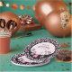 These adorable safari themed baby shower paper plates can be personalised with the honoree's own name and baby shower date! Cute baby jungle animals decorate the plate, with a swinging monkey, smiling giraffe and jumping lion, all in a chic, Parisian pink and black colour scheme. The edge is decorated with a pink and black leopard spot pattern for a fancy look.