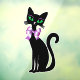 Fancy Pretty Black Cat Green Eyes Pink Bows
