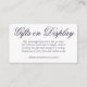 GIFTS ON DISPLAY: Elegant, minimalist script "gifts on display" baby shower or gender reveal party enclosure card. The classic design includes a modern handlettered quote typography overlay along with a poem. For other colours or matching products, please visit the JustFharryn Zazzle store, or contact the designer, c/o Fharryn@yahoo.com All rights reserved. #zazzlemade