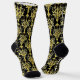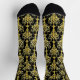 This pair of socks features an old-school style decorative pattern, set in gold against a black background, for a truly unique look.