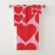 Fancy Romantic Red & Pink Hearts Pattern Bath Towel Set
