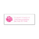 Self-inking stamp with your name in a bold modern font. A fancy rose illustration to the left of your address details.