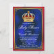 Royal baby shower invitation with pretty red and gold crown on a beautiful red, royal blue and gold background. You can change the text as needed for your event. Print on glossy paper for best results.