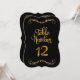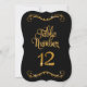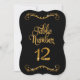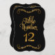 Table Number 12 DESIGN COLLECTION:  In black with a golden glitter metallic look with a dimensional effect that is perfect to coordinate with a wide range of weddings, bridal showers, business and formal reception events.  This is a hand lettered calligraphy font with scrolls, swirls and elegant handwriting lettering.  There is a lovely leaf swirl flourish at the top and bottom that accentuates the shape of the cut edge.  You will need a number stand or frame to use these effectively - which are not provided.  Available in numbers 1-25 stock, we can add additional numbers if your event is large enough to require them.  We can also do custom colour combinations for a small additional fee.  COLOR PALETTE:  Ebony black and Faux Gold Glitter Metallic Look