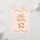 Table Number 12 DESIGN COLLECTION: In pale pastel blush shell pink with a golden glitter metallic look with a dimensional effect that is perfect to coordinate with a wide range of weddings, bridal showers, business and formal reception events. This is a hand lettered calligraphy font with scrolls, swirls and elegant handwriting lettering. There is a lovely leaf swirl flourish at the top and bottom that accentuates the shape of the cut edge. You will need a number stand or frame to use these effectively - which are not provided. Available in numbers 1-25 stock, we can add additional numbers if your event is large enough to require them. We can also do custom colour combinations for a small additional fee. COLOR PALETTE: Ebony black and Faux Gold Glitter Metallic Look