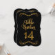 Table Number 14 DESIGN COLLECTION: In black with a golden glitter metallic look with a dimensional effect that is perfect to coordinate with a wide range of weddings, bridal showers, business and formal reception events. This is a hand lettered calligraphy font with scrolls, swirls and elegant handwriting lettering. There is a lovely leaf swirl flourish at the top and bottom that accentuates the shape of the cut edge. You will need a number stand or frame to use these effectively - which are not provided. Available in numbers 1-25 stock, we can add additional numbers if your event is large enough to require them. We can also do custom colour combinations for a small additional fee. COLOR PALETTE: Ebony black and Faux Gold Glitter Metallic Look