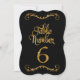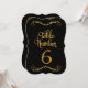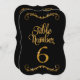 Table Number 6 DESIGN COLLECTION: In black with a golden glitter metallic look with a dimensional effect that is perfect to coordinate with a wide range of weddings, bridal showers, business and formal reception events. This is a hand lettered calligraphy font with scrolls, swirls and elegant handwriting lettering. There is a lovely leaf swirl flourish at the top and bottom that accentuates the shape of the cut edge. You will need a number stand or frame to use these effectively - which are not provided. Available in numbers 1-25 stock, we can add additional numbers if your event is large enough to require them. We can also do custom colour combinations for a small additional fee. COLOR PALETTE: Ebony black and Faux Gold Glitter Metallic Look