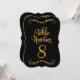 Table Number 8 DESIGN COLLECTION: In black with a golden glitter metallic look with a dimensional effect that is perfect to coordinate with a wide range of weddings, bridal showers, business and formal reception events. This is a hand lettered calligraphy font with scrolls, swirls and elegant handwriting lettering. There is a lovely leaf swirl flourish at the top and bottom that accentuates the shape of the cut edge. You will need a number stand or frame to use these effectively - which are not provided. Available in numbers 1-25 stock, we can add additional numbers if your event is large enough to require them. We can also do custom colour combinations for a small additional fee. COLOR PALETTE: Ebony black and Faux Gold Glitter Metallic Look