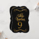 Table Number 9 DESIGN COLLECTION:  In black with a golden glitter metallic look with a dimensional effect that is perfect to coordinate with a wide range of weddings, bridal showers, business and formal reception events.  This is a hand lettered calligraphy font with scrolls, swirls and elegant handwriting lettering.  There is a lovely leaf swirl flourish at the top and bottom that accentuates the shape of the cut edge.  You will need a number stand or frame to use these effectively - which are not provided.  Available in numbers 1-25 stock, we can add additional numbers if your event is large enough to require them.  We can also do custom colour combinations for a small additional fee.  COLOR PALETTE:  Ebony black and Faux Gold Glitter Metallic Look