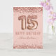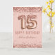 Fancy Script Pink Glitter Happy 15th Birthday Card