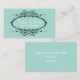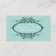 Elegant with a touch of vintage. Fancy scrollwork style oval frame, white fonts on seafoam background