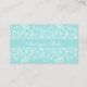 This business card has an elegant design of scrollwork in white on light blue. I've included templates on the front and back for your own information and personalisation. There are several paper options available, be sure to compare the thickness and gloss that would be right for your business. All items are filled by Zazzle and are 100% satisfaction guaranteed. For your order and shipping issues, please contact Zazzle's Customer Support via https://goo.gl/nCgptf